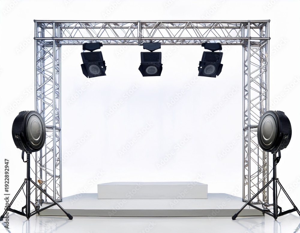 white table on stand with blue light background in a news studio room 3d rendering #1922892947