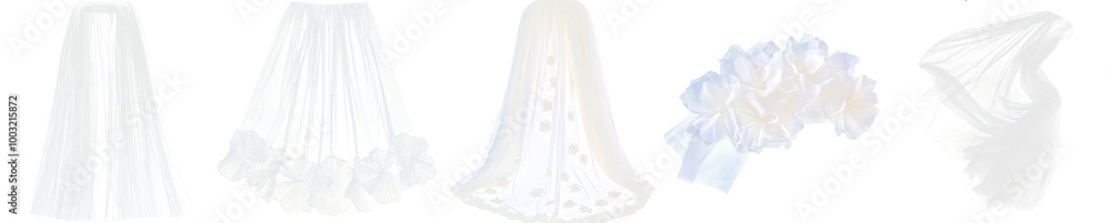 White wedding bridal veil, tulle fabric isolated on transparent background, PNG. Clipart template #1003215872