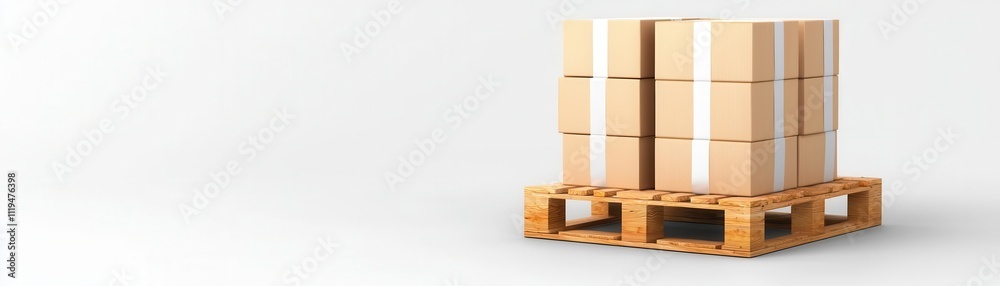 wholesales concept. Wholesale pallets with shrink-wrapped goods for bulk buyers, secure packaging, 3D illustration #1119476398