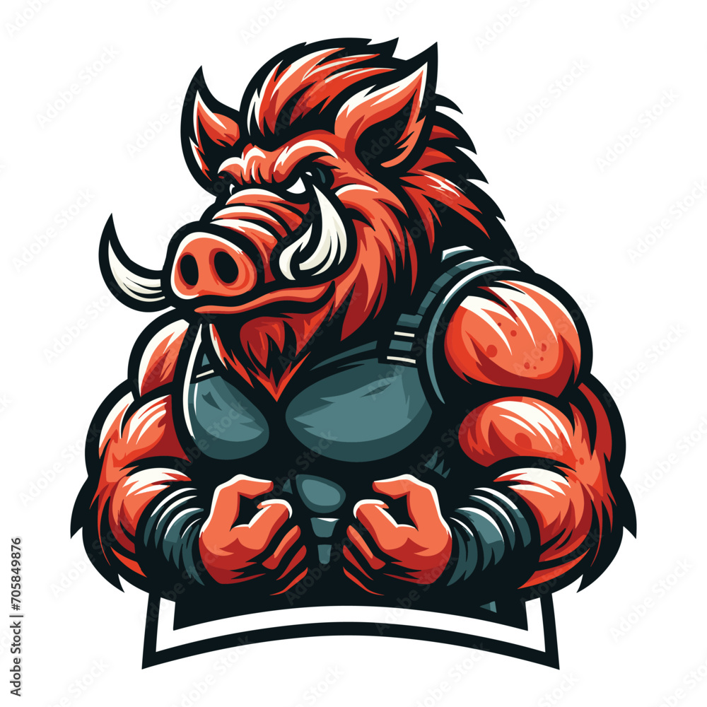 wild beast strong muscle hog boar pig mascot design vector illustration, logo template isolated on white background #705849876