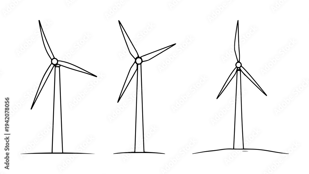 Wind turbine set with modern flat art design featuring green energy, renewable power, sustainable technology with clean lines and white background #1942078056