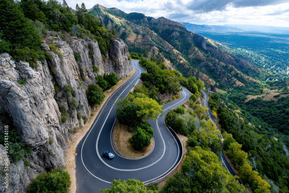 Winding Mountain Road with Scenic Valley View #1951414118