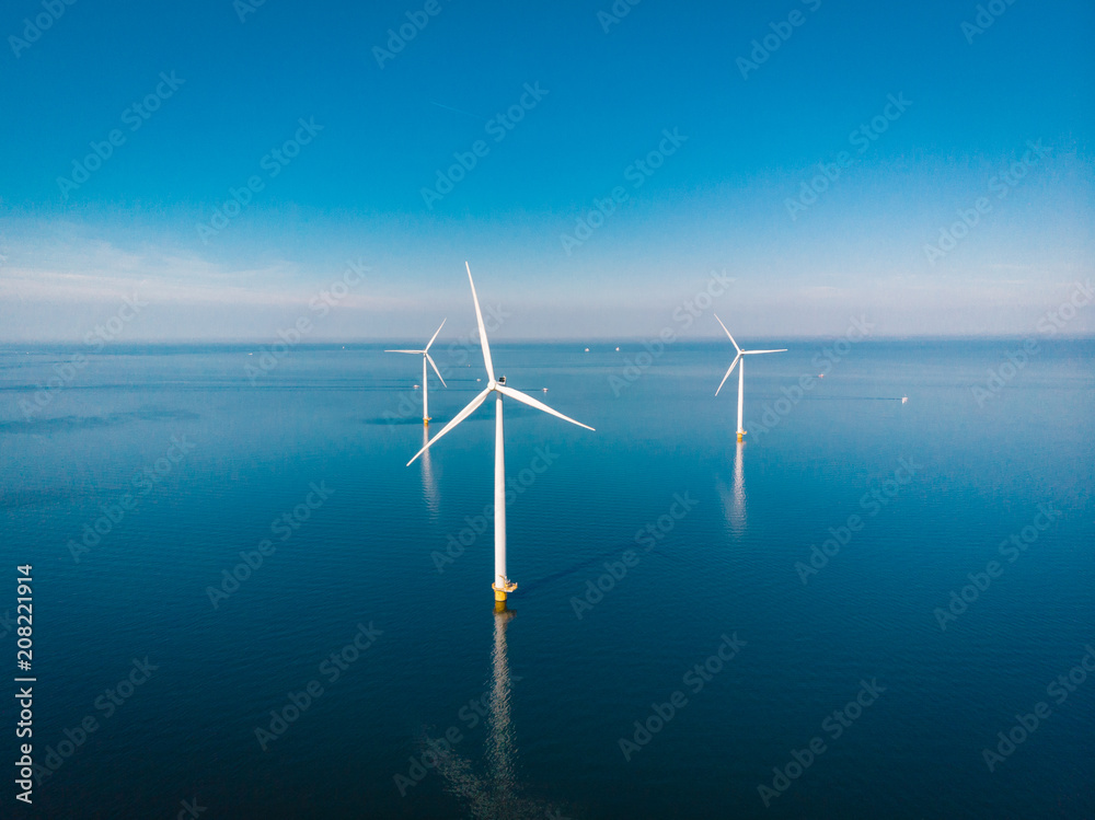 windmill park offshore and onshore windmill farm in the netherlands #208221914