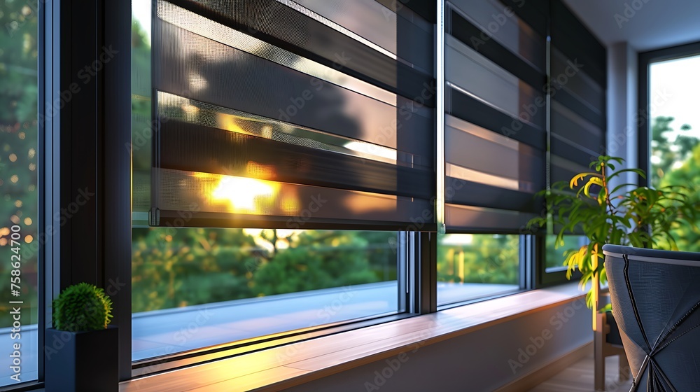 Window roller duo system day and night Morning sunlight shining through the window #758624700