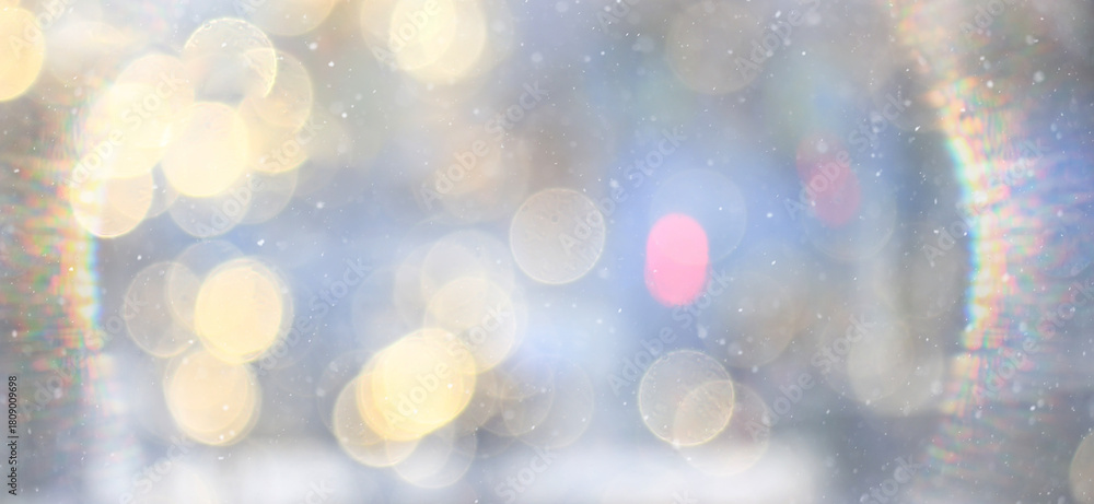 Winter abstract background with falling snow and a frame of light, sun glare, festive backdrop #1809009698