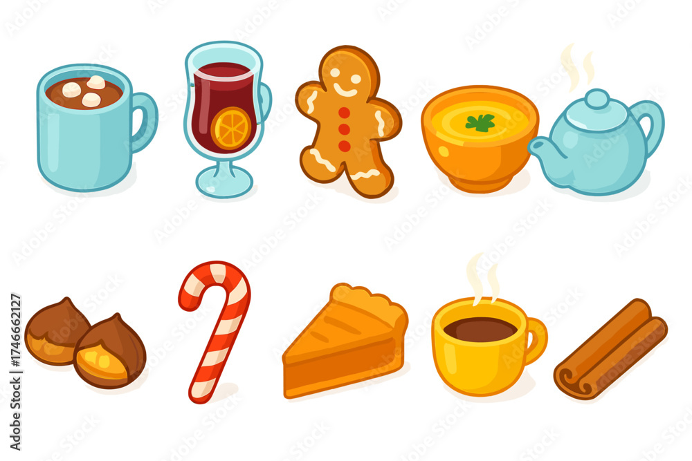 Winter beverages and treats icon set: cozy icons in a filled style for holiday joy #1746662127