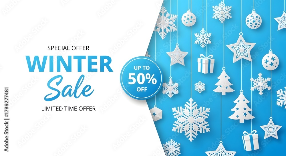 Winter sale special offer with hanging winter paper ornaments #1799277481