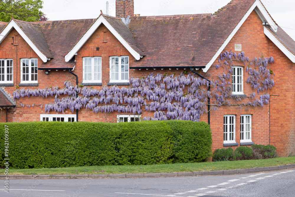 Wisteria tree growing on the wall of an English house, UK #1962109307
