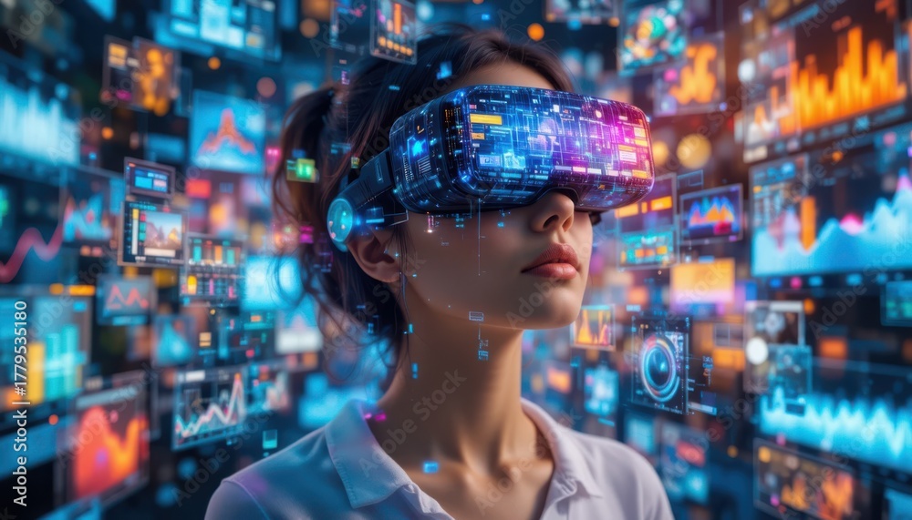 Woman Engaging with Data in Futuristic Tech Environment #1779535180