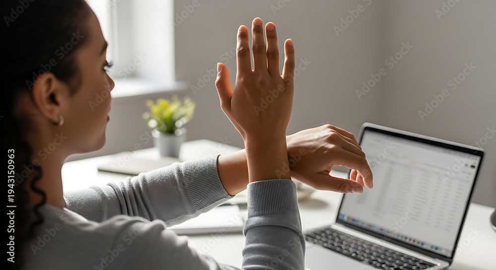 Woman raising hand during online meeting using laptop at home. #1943150963