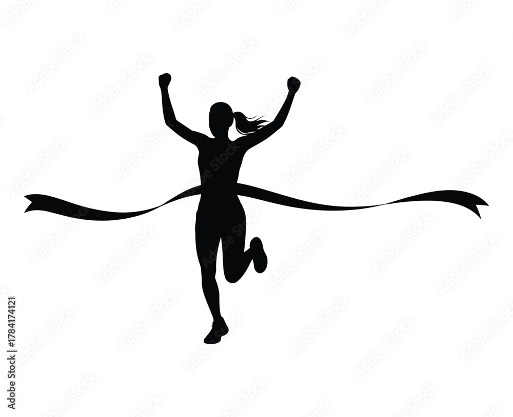 Woman Runner Crossing Finish Line Silhouette | Athlete Race Winner Vector #1784174121