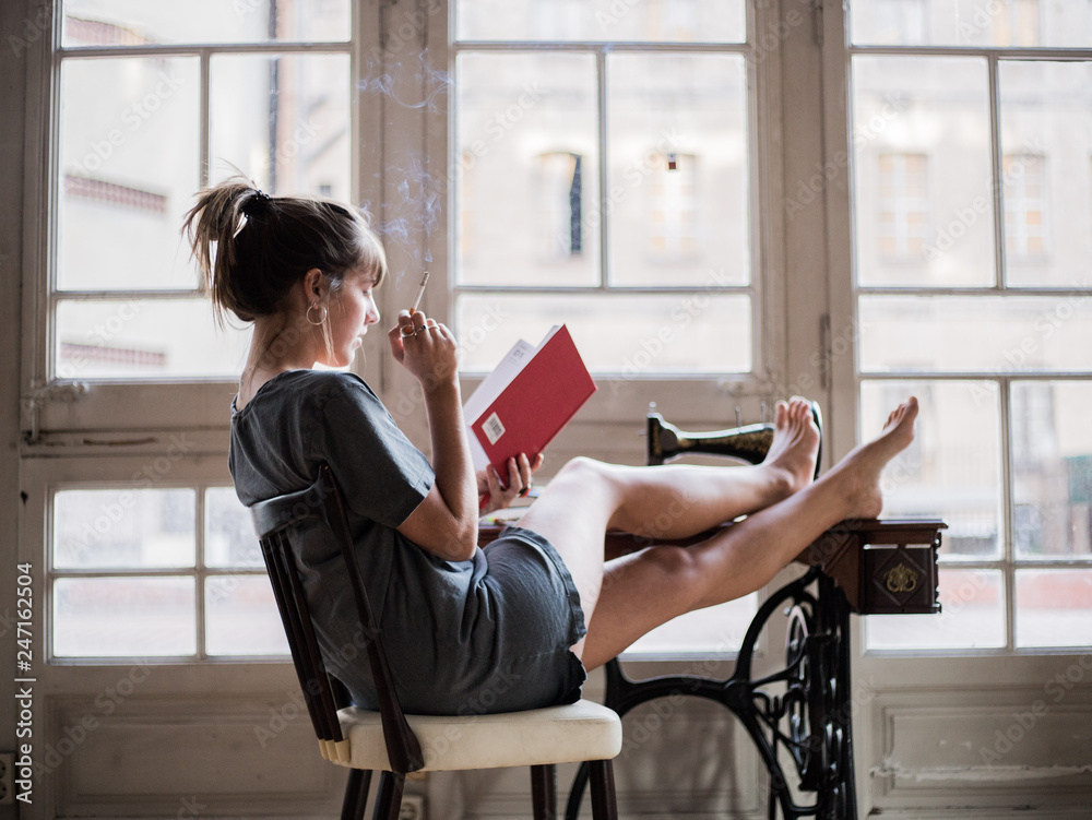 woman smoking and reading #247162504