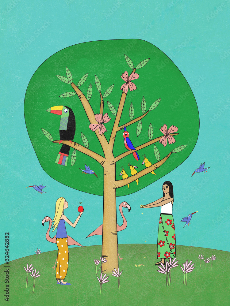 Women volunteers taking care of animals in nature #324642882