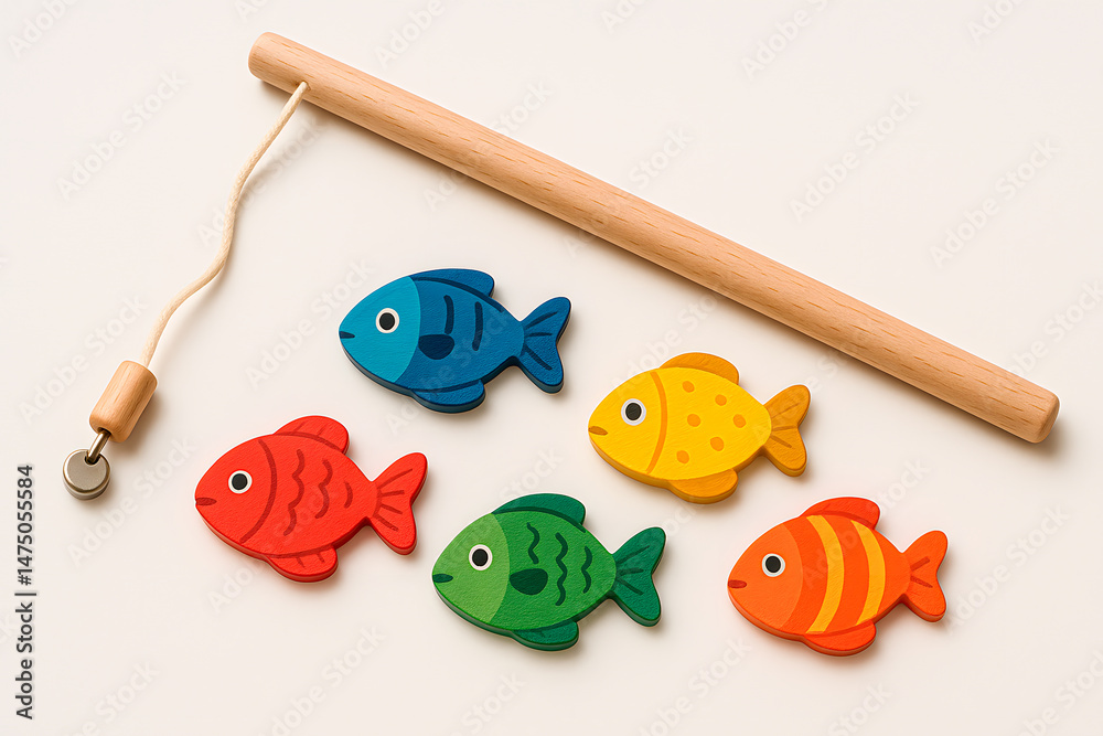 Wooden fishing game with colorful fish #1475055584