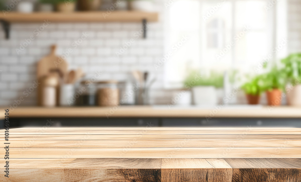 Wooden kitchen table top perfect for product display or showcase. Ideal for overlaying text or featuring your product. #1016034106