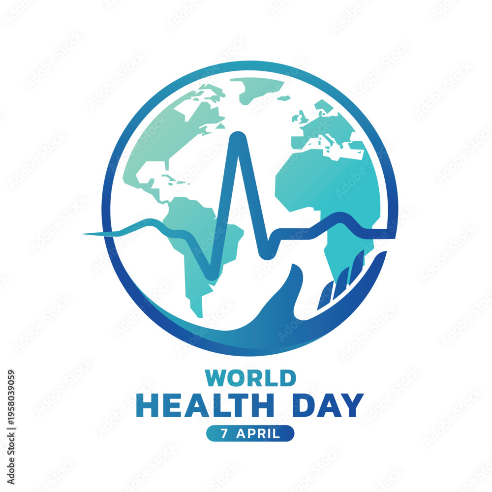 • #1958039059 World health day - Line blue heart wave with circle around to hand hold green globe sign vector design