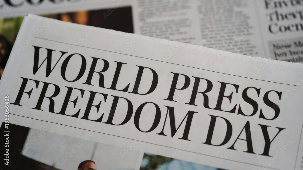 World press freedom day headline on newspaper showing importance of independent journalism and media communication #1953056428