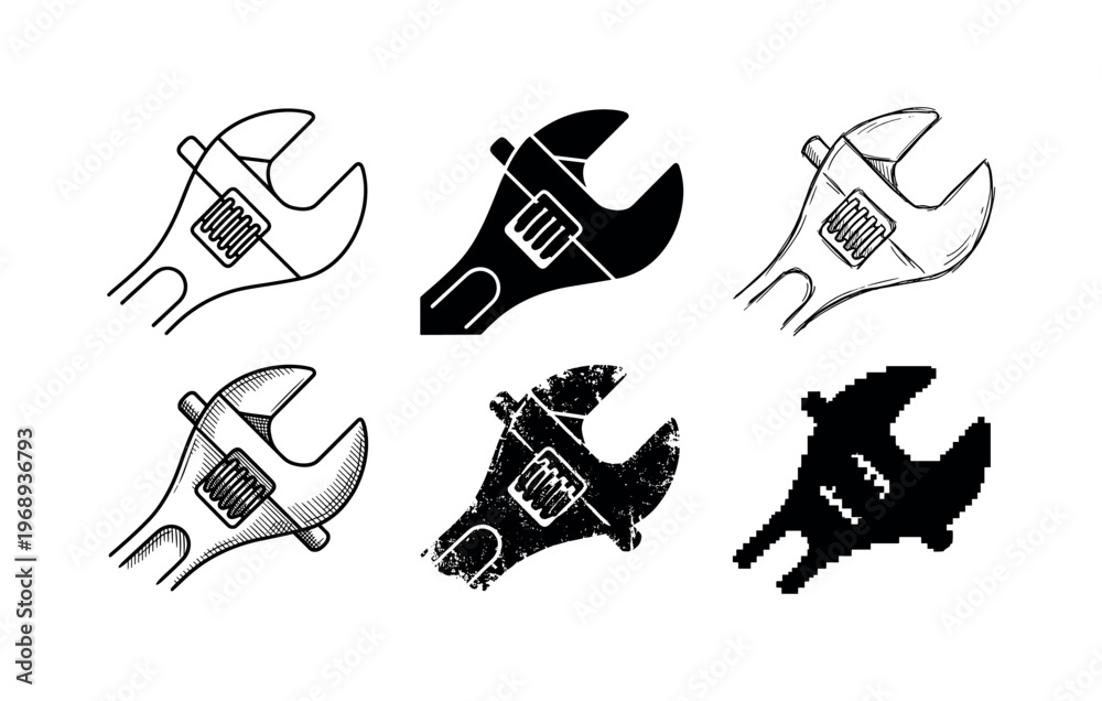 wrench pivot, arranged as a clean Variant 1: clean thin outline, no fill, rounded joins, even stroke. #1968936793
