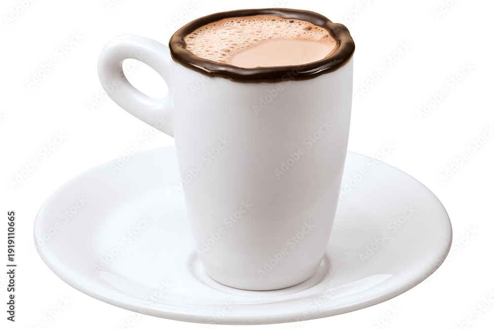 Xícara com chocolate quente com borda de creme de chocolate com avelã isolado em fundo transparente #1919110665