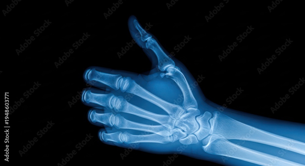 X-ray of a human hand giving a "thumbs up" gesture, showing bones in detail #1948603771