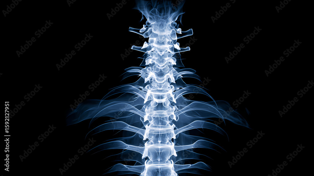X ray of a human spine. spine contour. Illustration #1592127951