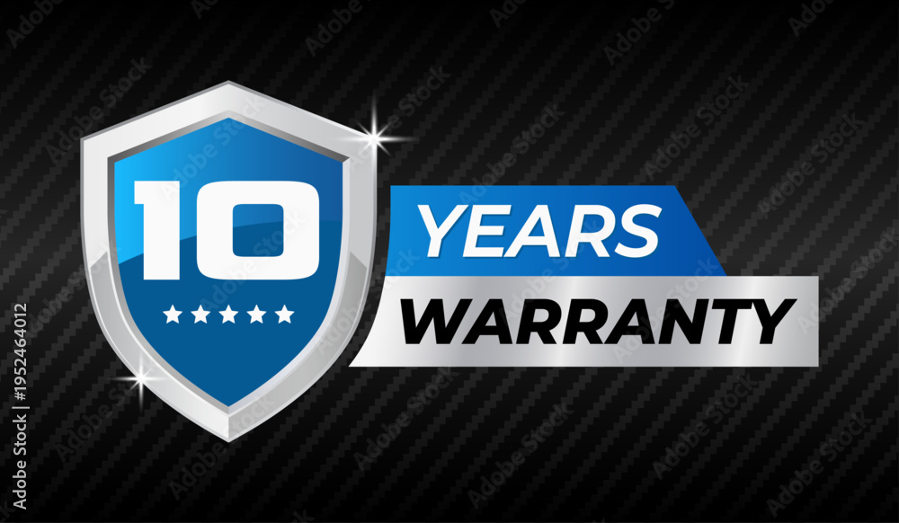 10 years warranty blue shield badge premium product guarantee label for quality assurance protection service. #1952464012