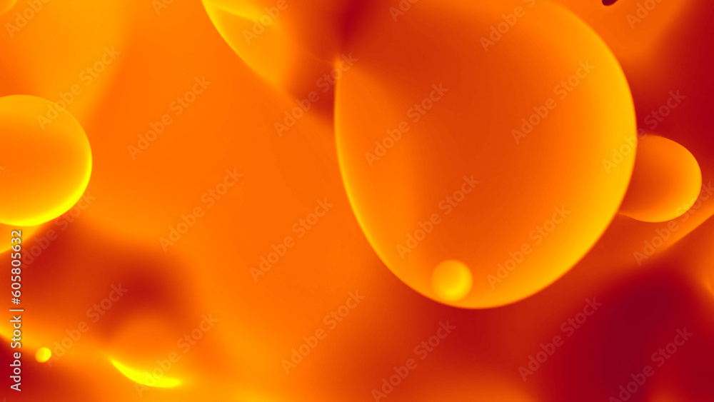 yellow and orange fantastic morphed liquid like lava lamp - abstract 3D rendering #605805632