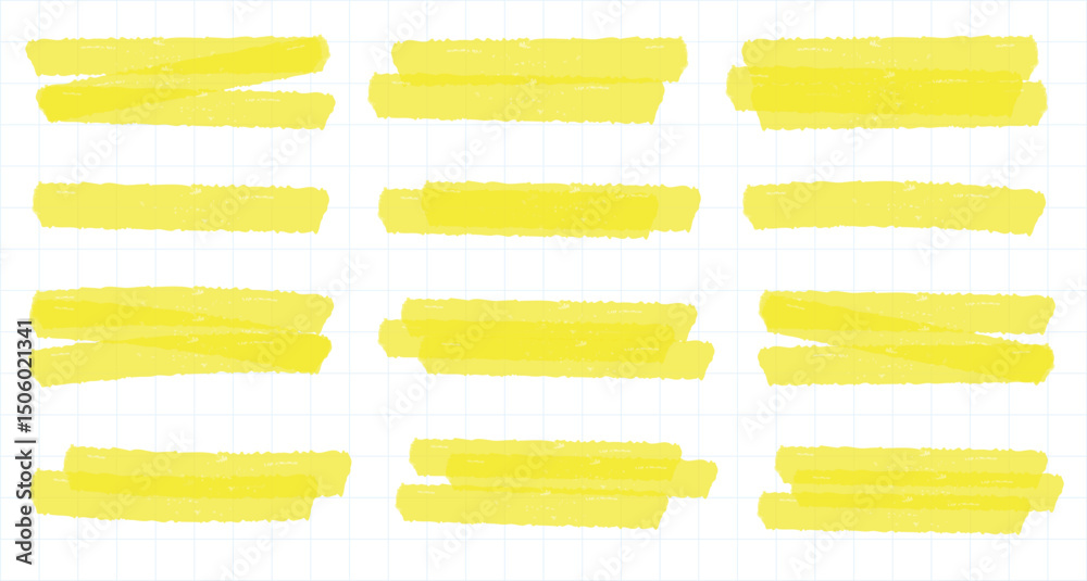 Yellow Marker Stroke Pack, Hand Drawn Sharpie Lines, Vector Underlining Elements set #1506021341