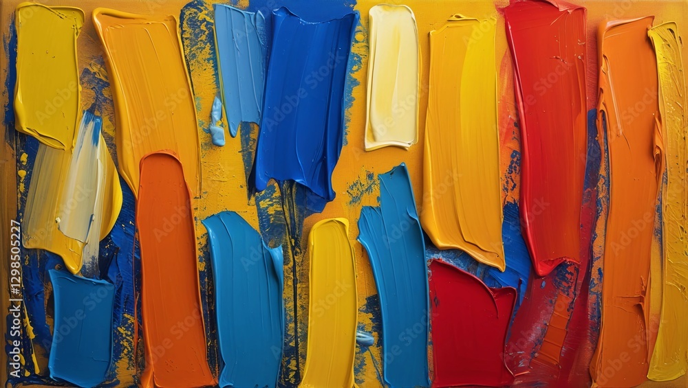 yellow orange red colored oil painting on canvas. Abstract art background artwork. Brushstrokes of paint. art Contemporary Colorful textured thick paint surface abstract rough art painting texture #1298505227