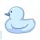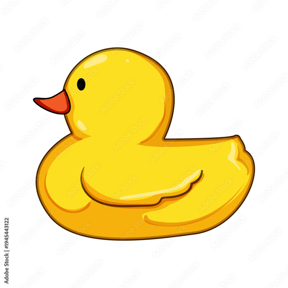 Yellow rubber duck toy with orange beak, cheerful smiling bath toy symbolizing childhood play, innocence and clean fun, isolated on white for studio or product use #1945443122