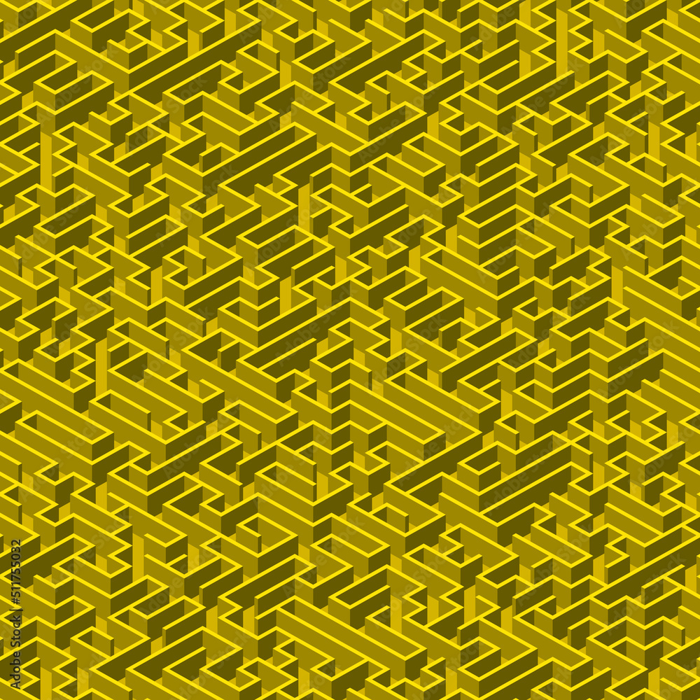 Yellow vector seamless maze endless labyrinth pattern background #511755032