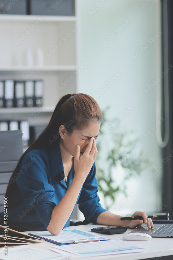 Young businesswoman is holding two credit cards with a worried expression, trying to decide which one to use to pay off her debt #1926415300