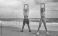 Young healthy Yoga woman and man workout yoga pose on the beach at sunset #1957486117