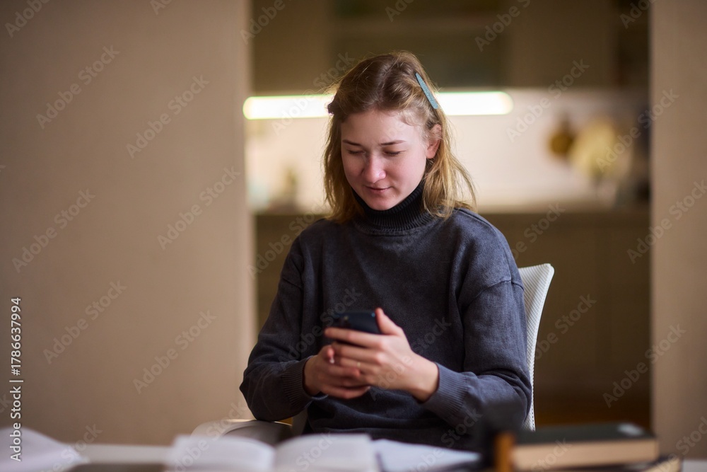Young lady with cerebral palsy studying using technological aids, Enthusiastic woman with cerebral palsy learning with aid of modern assistive technology at bright workspace #1786637994
