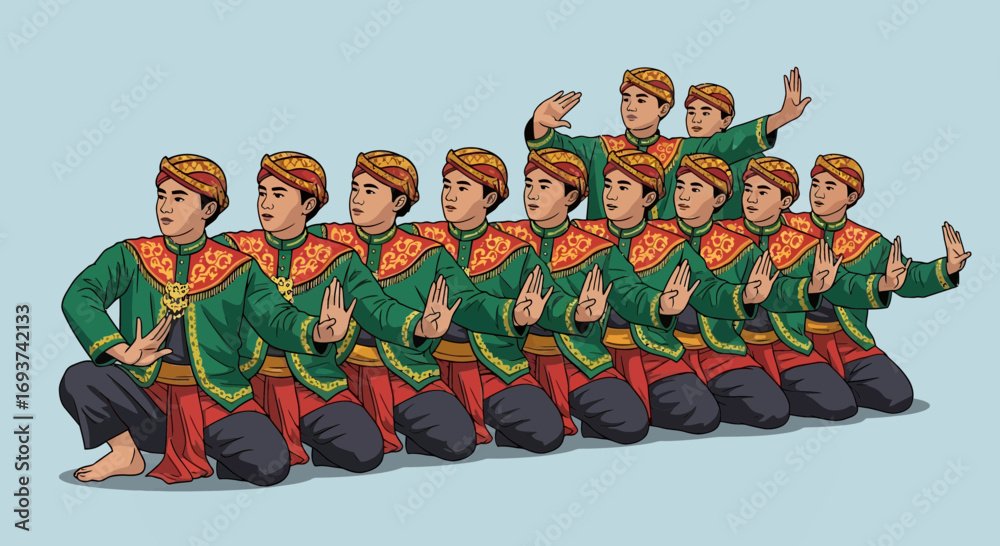 Young Men Performing Synchronized Traditional Cultural Dance in Formation #1693742133