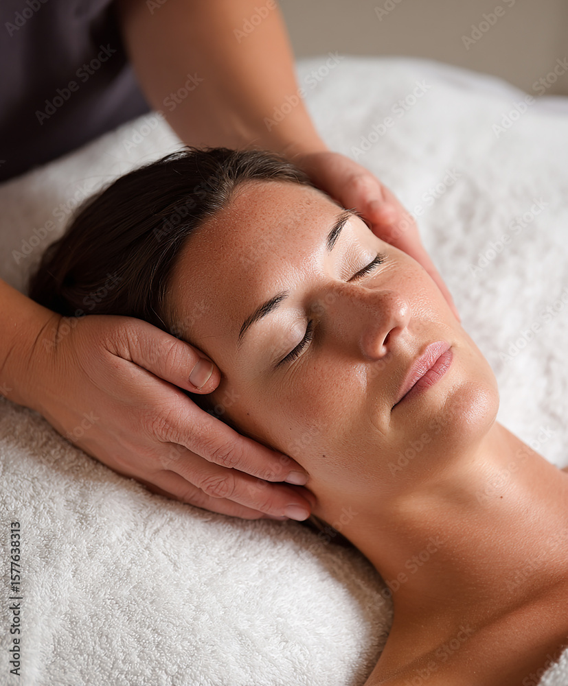 Young woman getting head massage. Concepts about cosmetics, skincare and wellness. Spa treatment #1577638313