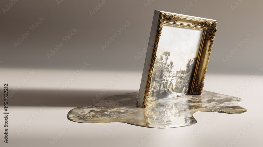 Zerfließendes Ölgemälde symbolisiert Investmentrisiken und Wertverfall von Antiquitäten und Kunstwerken #1923827212