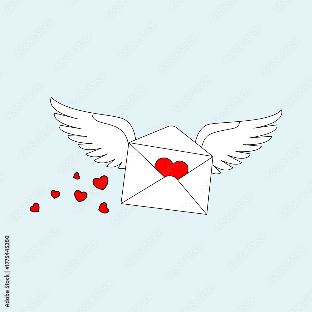 A flying white envelope with wings and a red heart, leaving a trail of small red hearts. #1775445280