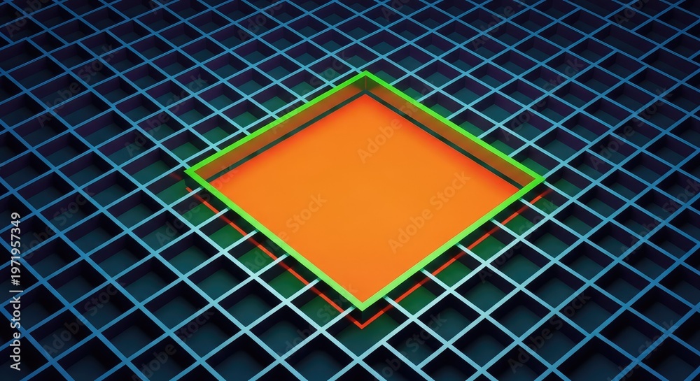 A highly structured repeating geometric grid pattern highlighting a significant empty space within its organized sequence, perfect, array, incomplete #1971957349