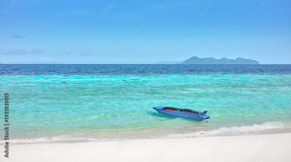 A small boat by the beach, Semporna district, Borneo, Malaysia. #1921831015
