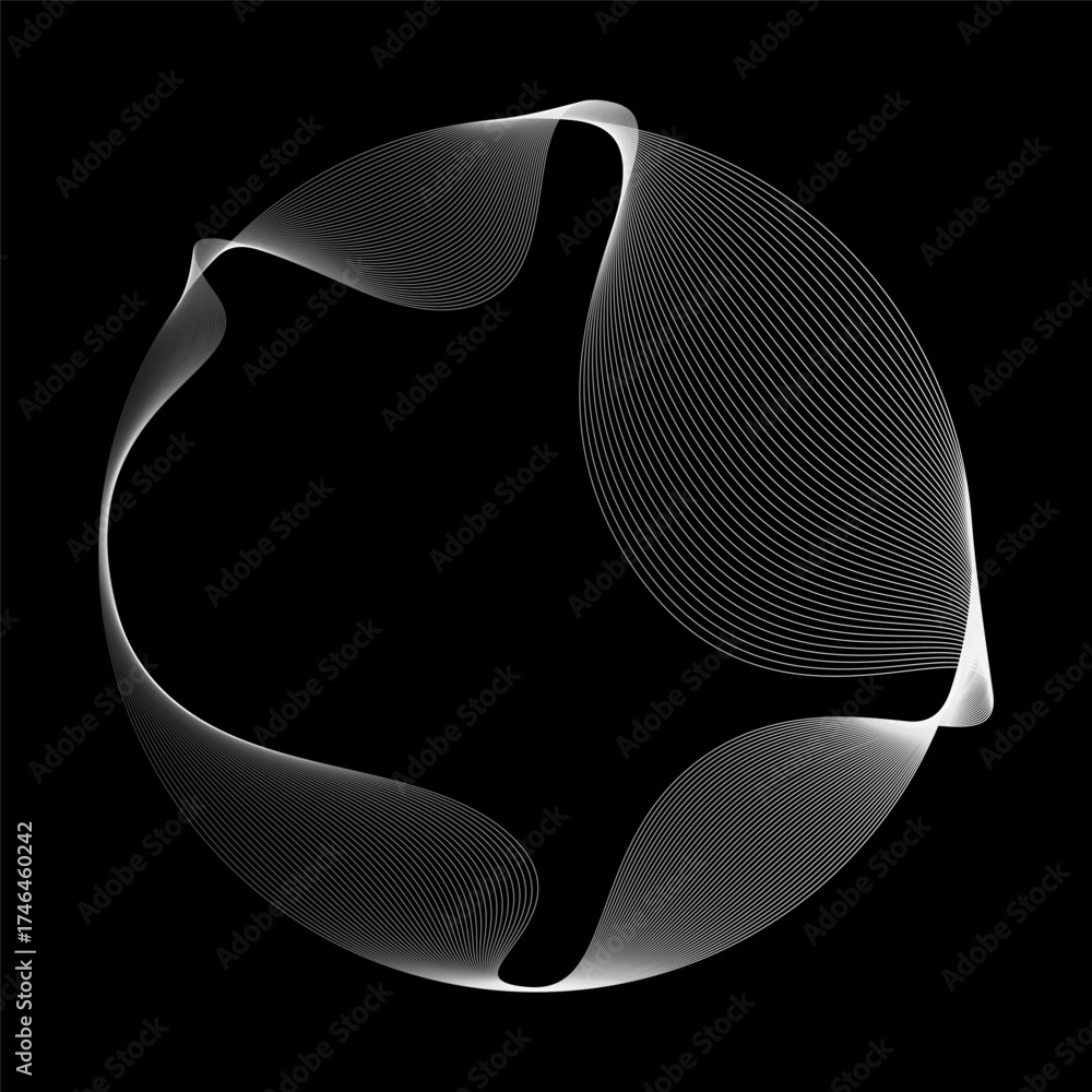 Abstract circle round frame by light lines wavy flowing white isolated on black background. Vector in concept modern, technology, science, music. #1746460242