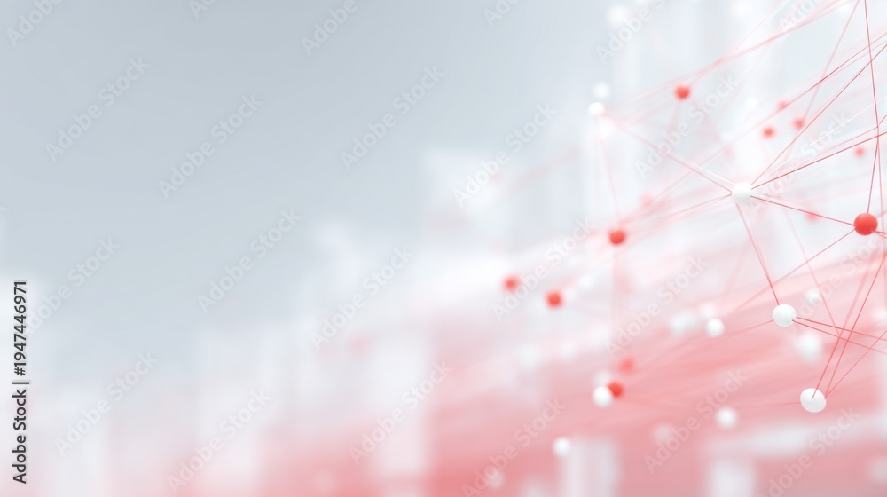 Abstract connections with red and white dots on a light gray background representing technology and networking concepts #1947446971