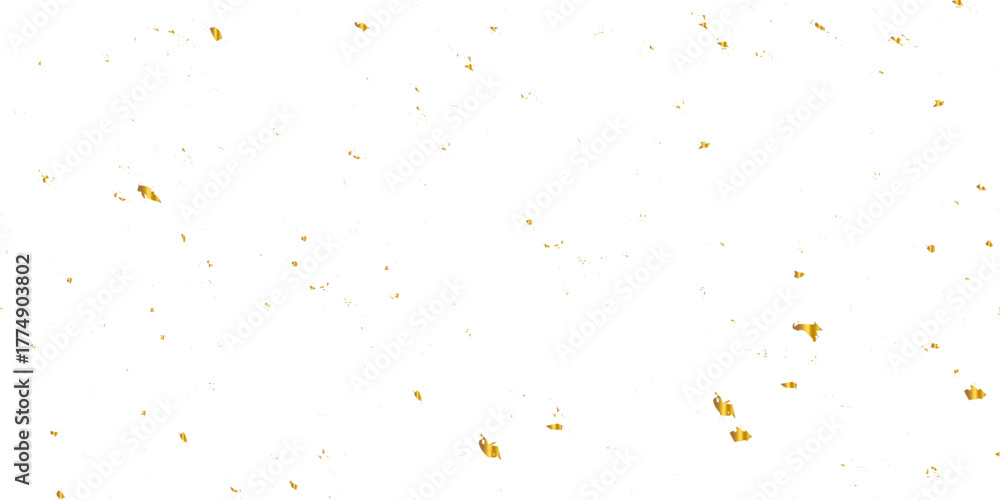 Abstract doted and confetti golden glitter particles splatter on transparent background. Luxury golden glitter confetti that floats down falling bokeh celebration background. #1774903802