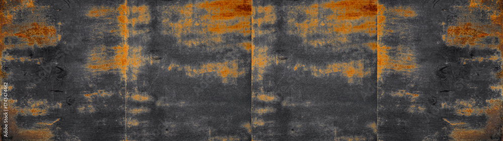 Abstract grunge industrial rusty orange black metal corten steel wall background texture banner panorama long #1743474462