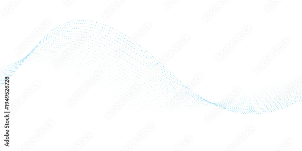 Abstract light blue dotted particle wave with flowing curves and gradient mesh halftone pattern, modern technology soundwave style background for banner poster and presentation #1949526728