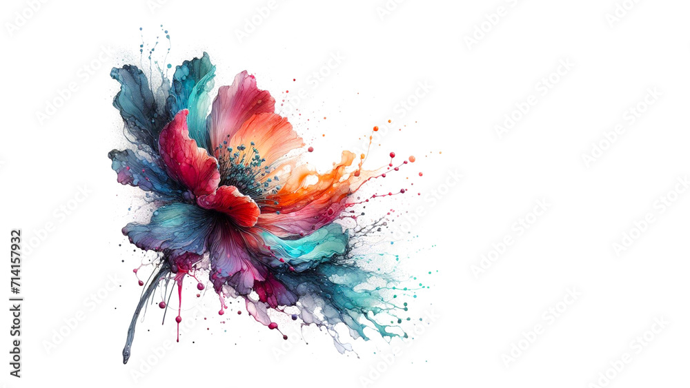 Abstract paint flower colorful petals by liquid fluid splash watercolor alcohol ink isolated on white background #714157932