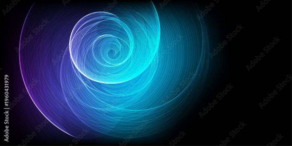 Abstract vector spiral energy wave with glowing lines blue green in concept quantum, science, technology, space on black background #1960431979