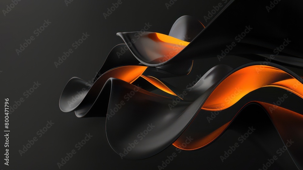 abstract wallpaper with shinny and matte free shapes in black and orange colors on a black background #800471796