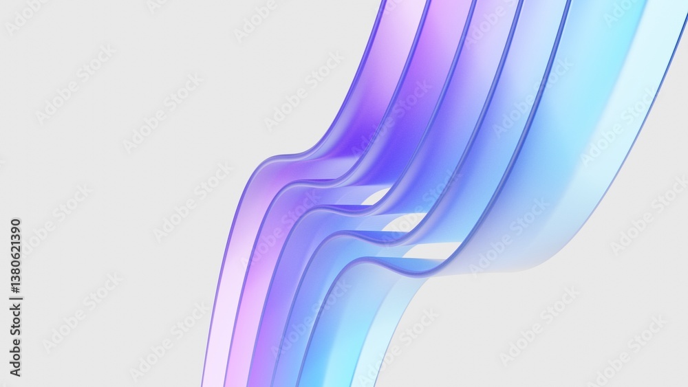 Abstract wavy glass structure with blue and purple dispersion effect. smooth curved design with Transparent glossy and light refraction. 3d rendering #1380621390