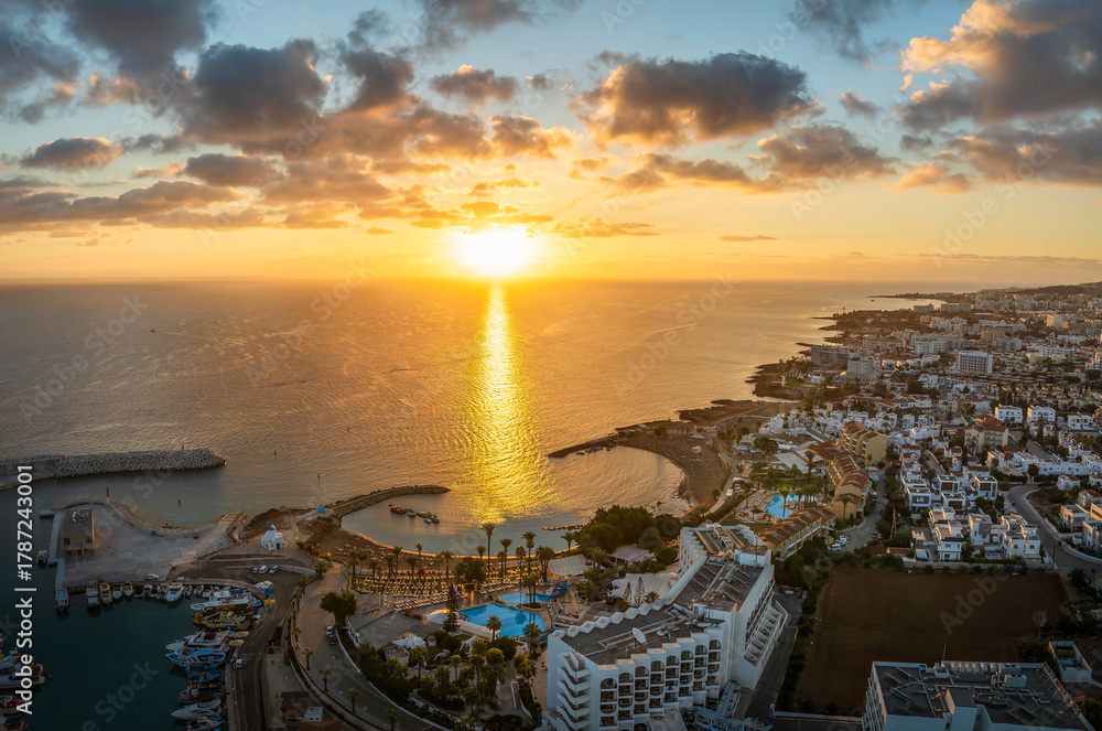Aerial view with Kalamies Beach at sunrise time in Protaras, Cyprus #1787243001